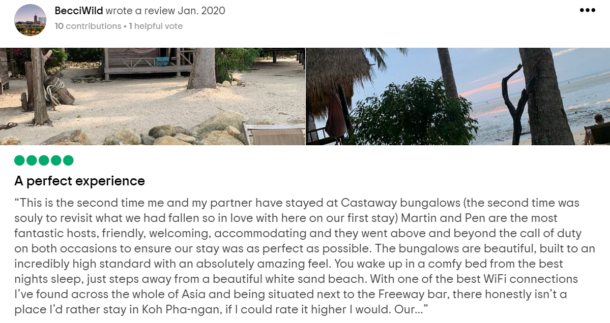 The first reason why we chose this type of accommodation is the number of restaurants and attractions to see. I think staying in this beautiful place with excellent food is just a perfect vacation to consider-secondly, the price. As a first time traveler, it is such a huge consideration for us is the budget. We were happy enough to find this beautiful bungalow accommodation at a very affordable price. Lastly, look how instagrammable the area is. As a gen z, I would want to take lots of pictures of the beautiful scenic views to post on my social media to share with my friends. Also, I would be able to improve my photography skills with those breathtaking views, and of course, our ocean view right in front of our bungalow!