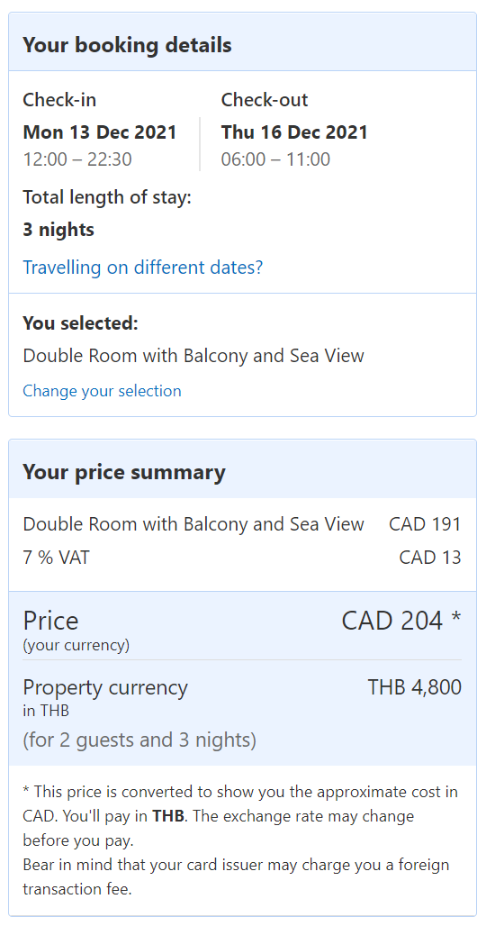 Benefits of using booking.com is that, the website converts the local currency to cad, so no need to bother converting.
